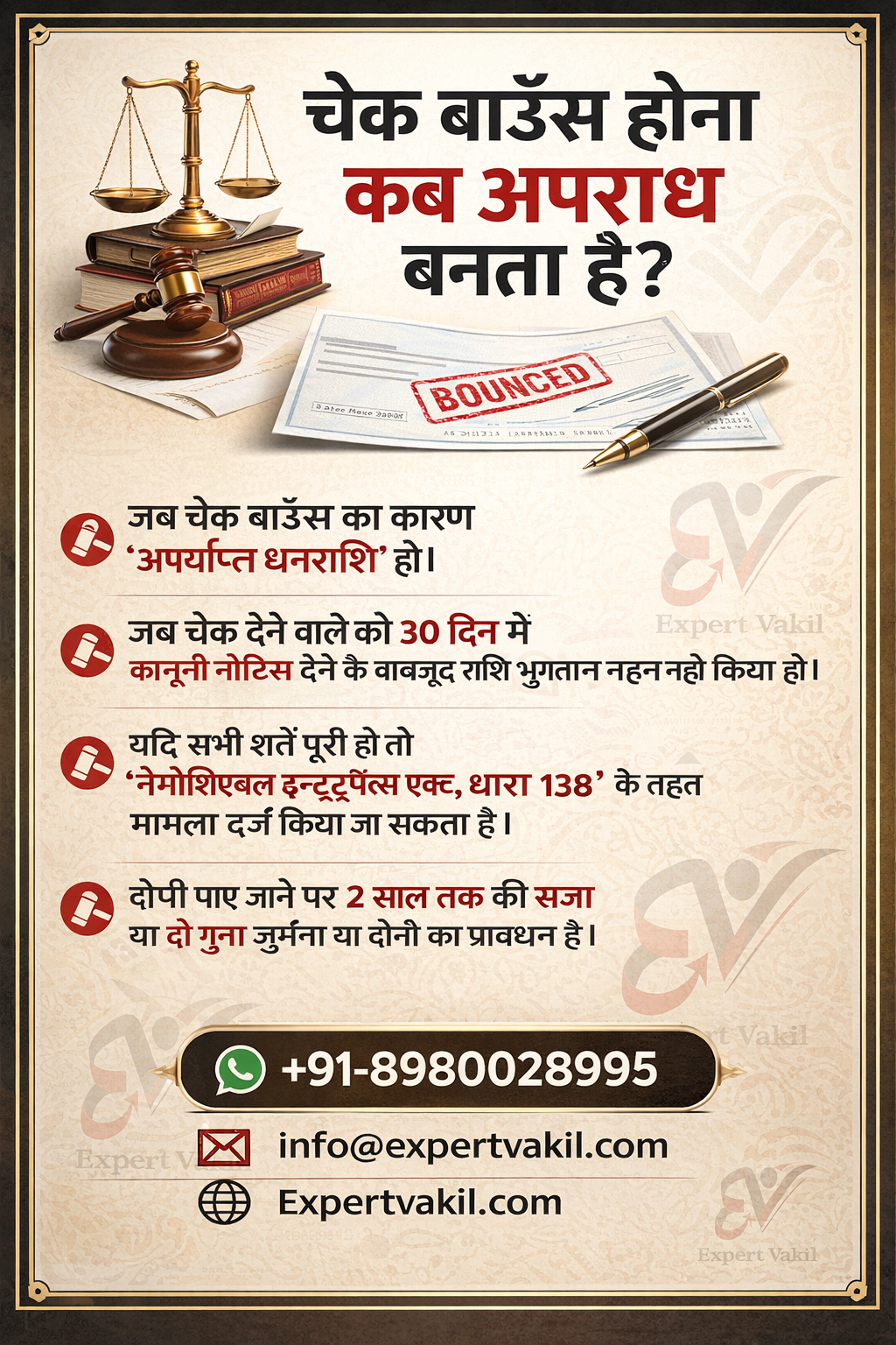 नीचे विस्तार से समझते हैं कि चेक बाउंस कब अपराध बनता है और कब नहीं।